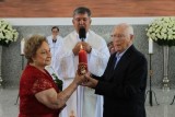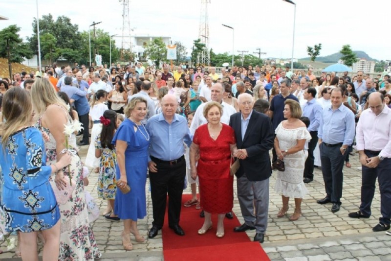 VoltarUm ato que simboliza o amor de um casal que completou 69 anos de matrimônio, emocionou os muriaeenses na manhã do último domingo (04/12), quando o empresário José Braz, presenteou sua esposa Lédia Tanus Braz, com um Complexo Turístico do Cristo Redentor. Na data em que comemoraram suas bodas de mercúrio, eles se reuniram com familiares e populares para realizar a inauguração do Complexo, que foi construído com recurso particular, em um terreno de 20 mil metros quadrados, na região central de Muriaé, no bairro Chácara Brum.Um grande público prestigiou a cerimônia - destaca-se a presença do deputado Estadual Braulio Braz, filho do casal. Todos conheceram o local que possui total infraestrutura para receber gratuitamente visitantes de todo país. O espaço abriga uma estátua do Cristo Redentor, de 30 metros de altura; a Capela São José do Operário, com capacidade para 350 pessoas, com obras de arte esculpidas na fachada do prédio e lindas pinturas no seu interior; e há ainda estacionamento para cerca de 270 veículos, ampla área ajardinada, restaurante, banheiros e loja de lembranças. Orgulhoso do presente concedido à sua companheira de vida, José Braz, escolheu a importante data para celebrar a Santa Missa inaugural na Capela São José do Operário. Um dos momentos de maior emoção e alegria durante o ato religioso foi quando o casal renovou os votos matrimoniais e trocou as alianças, abençoadas pelos três padres presentes.Feliz com a concretização de seu sonho, Lédia Braz, ressaltou: "Agradeço a todos que estão aqui nos prestigiando no dia de hoje e ao meu marido, por ter atendido ao meu pedido e feito este monumento do Cristo que está inserido neste Complexo Turístico, que ficou muito bonito".Segundo José Braz esta é uma obra feita pela sua família para a cidade de Muriaé: "Estou muito contente de poder comemorar hoje 69 anos de matrimônio e de dar a minha esposa e ao povo de Muriaé uma obra desta amplitude, para que todos possam desfrutar, admirar e participar das celebrações religiosas".Assim, o casal Lédia e José Braz realizaram o sonho de ter um Complexo Turístico que possui um monumento do Cristo Redentor que acolher toda cidade de Muriaé.